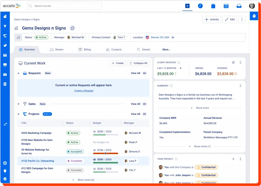 When we set out on the journey to deliver Accelo v4 over a year ago, we considered making the product easier to use by removing features and capabilities — it didn't sit right, but it was definitely the fastest way to make the product simpler. But from talking to our clients, we heard loud and clear that having the power of a true client work management platform, with the ability to manage clients, work, tasks, time and billing all in one place, was the secret sauce, the biggest benefit to their business.