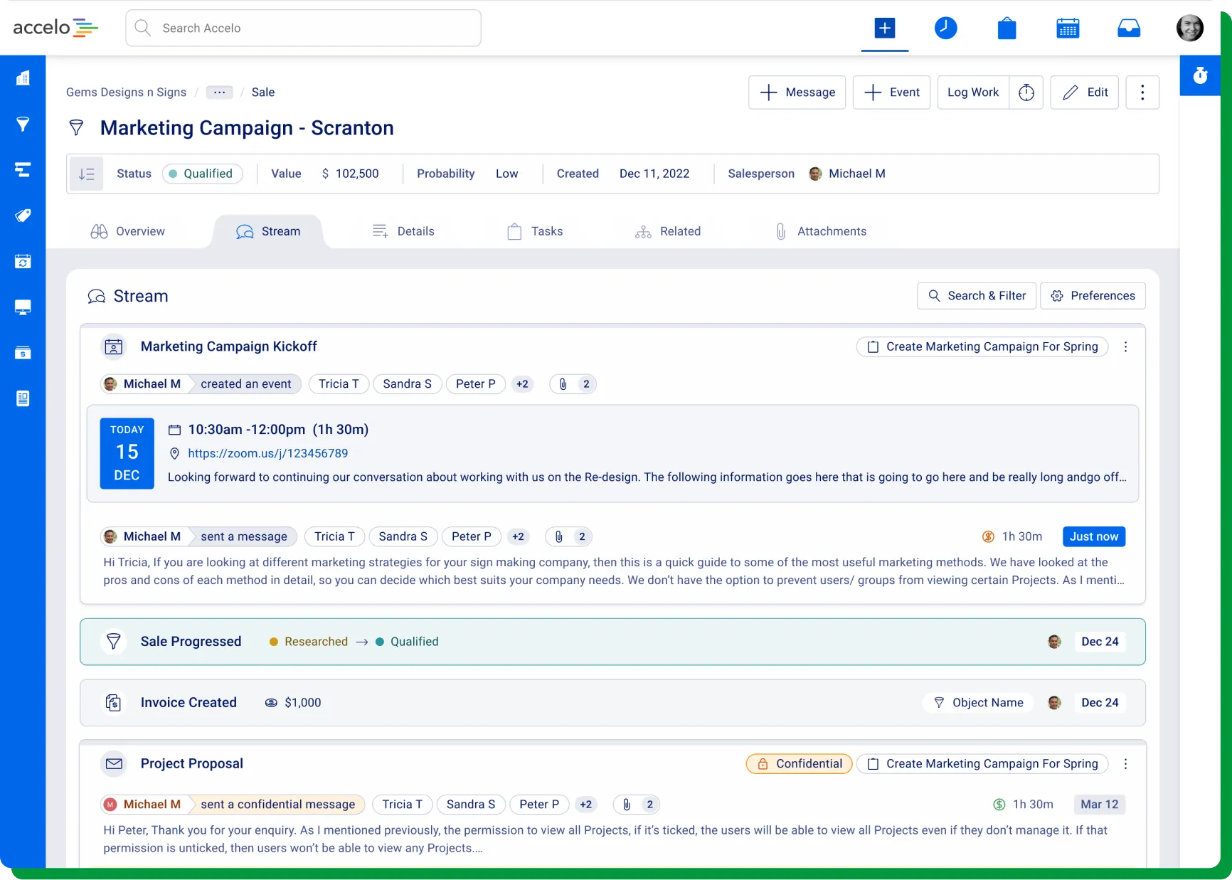 The version of the Stream we shipped in the beta isn't where our Accelo v4 journey will end. Early in 2024, we'll be delivering an upgraded version of the Accelo v4 Stream, making it easier to filter, search and interact with the Stream — both on the view screen as well as within the right-hand side drawers.